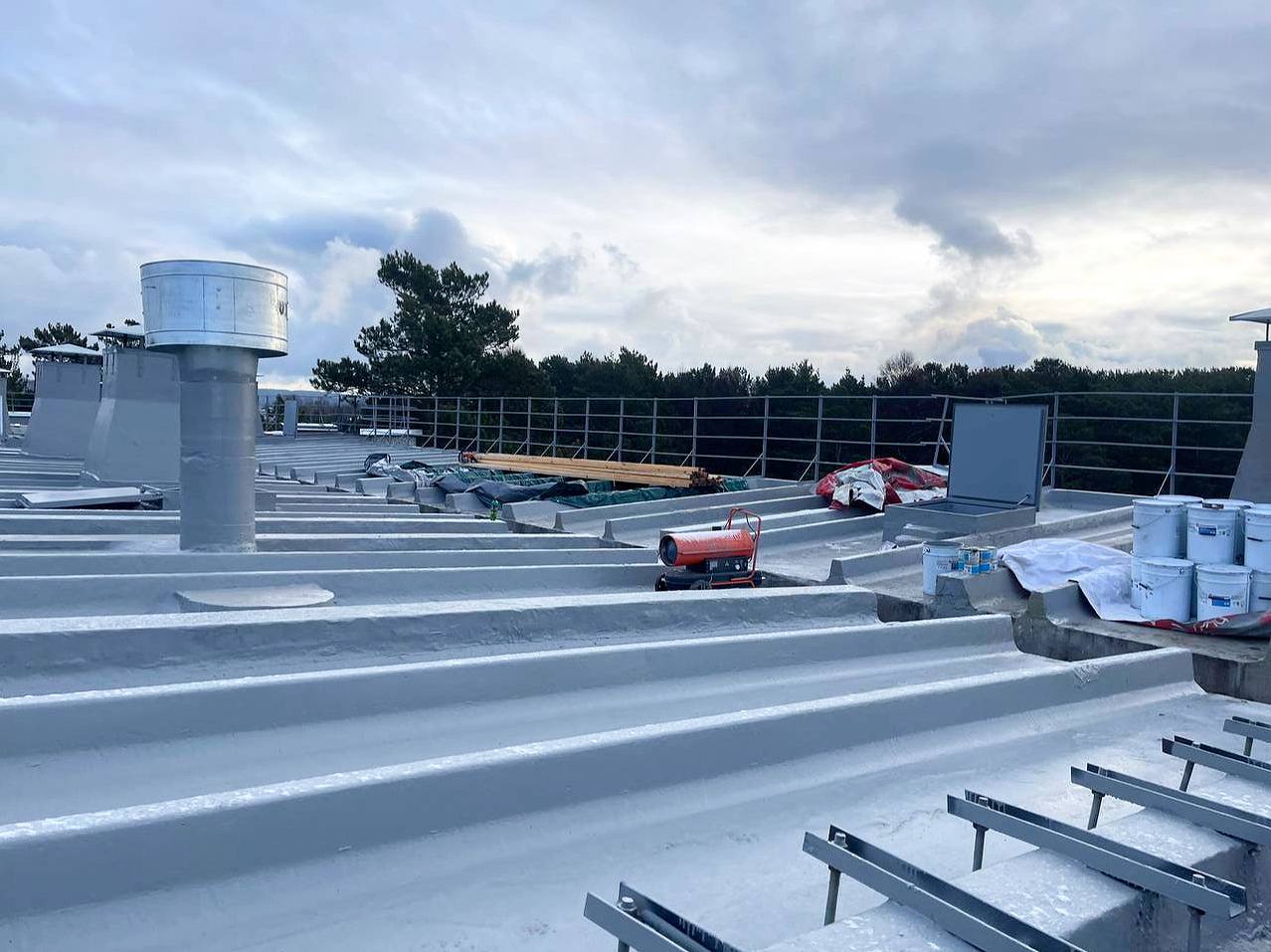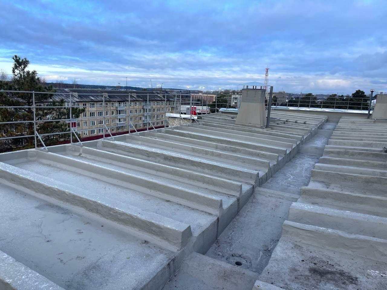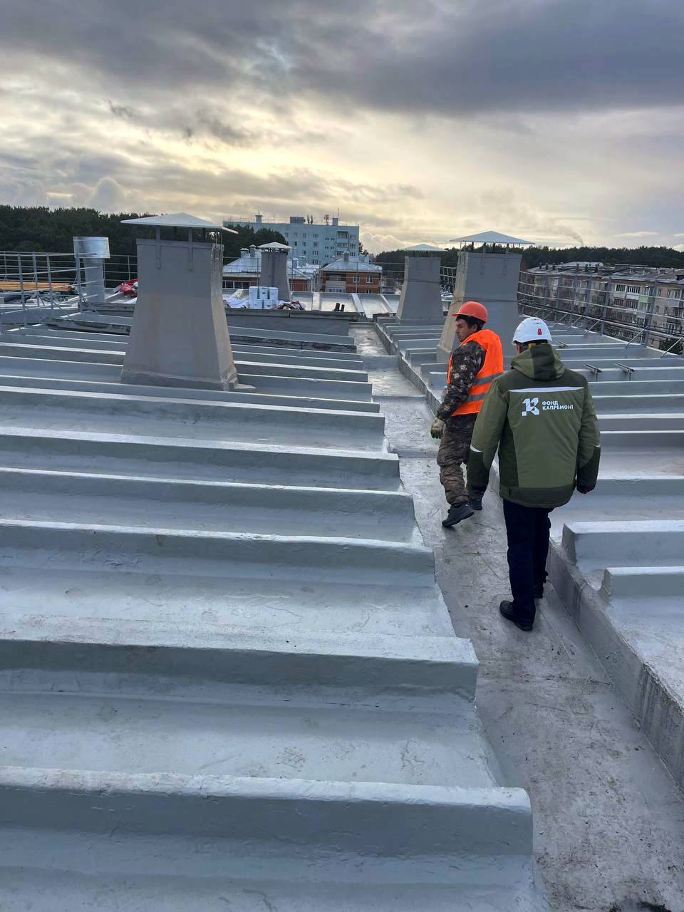 Уже сейчас произведена тщательная зачистка и восстановлены отдельные участки крыши и так называемые «рёбра», а на большую часть площади крыши нанесена гидроизоляция.