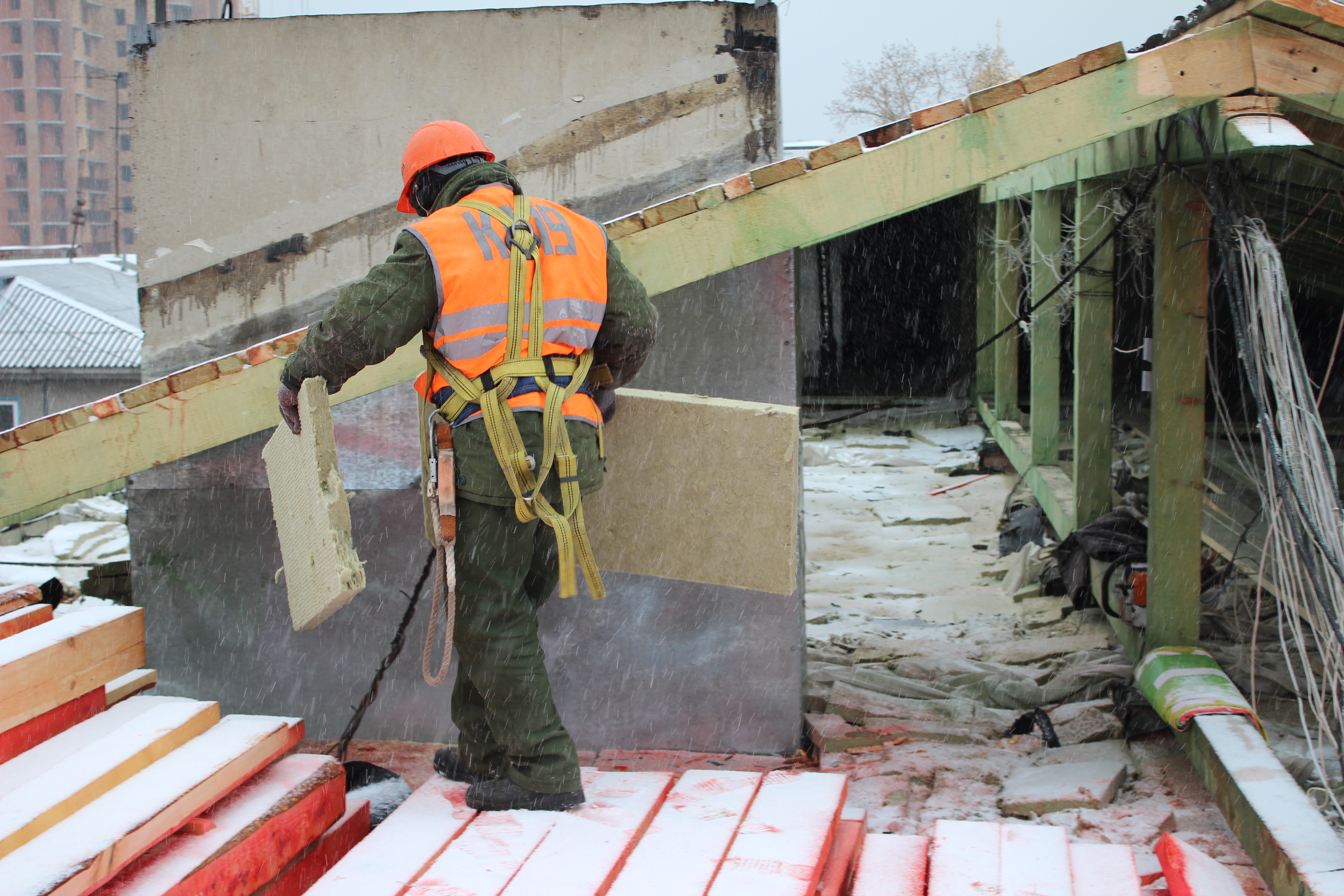 Специалисты фонда капитального ремонта, которые входят в приёмную комиссию, не смогли принять работы такого качества, договор с подрядчиком был расторгнут. В настоящее время новый подрядчик полностью переделывает кровлю (на фото).