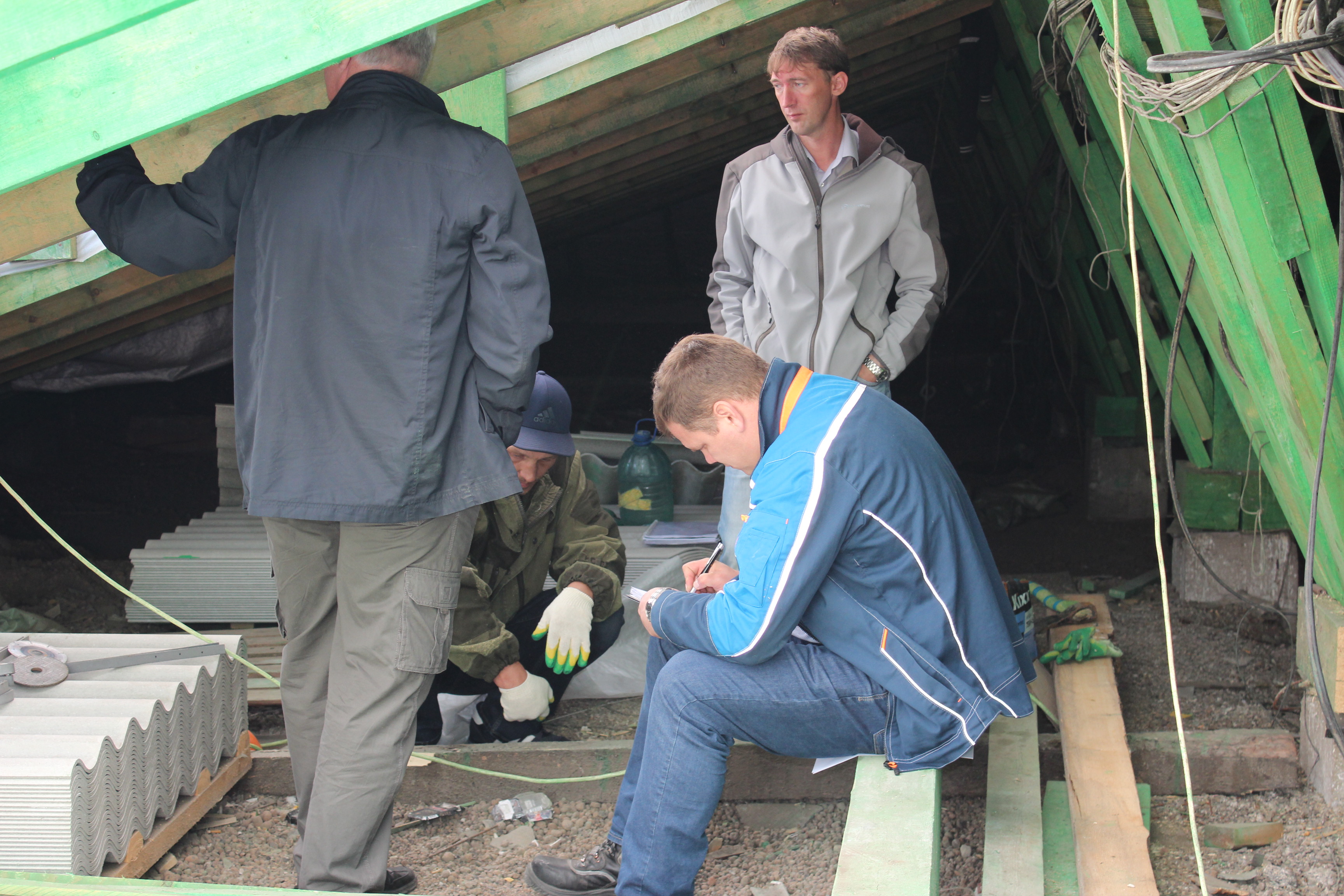 В ходе обследования комиссия установила нарушения, наиболее частые из которых: отсутствие ограждения, отсутствие возле дома информации том, кто ведёт работы на объекте, нарушение технологии укладки шифера (неправильная обрезка углов, наличие сколов и трещин), пропуски при покрытии стропильной системы огнебиозащитным составом. Все эти недостатки отражены в акте, подрядчик их обязан устранить. Следующая проверка выявит исполнение составленного сегодня предписания.