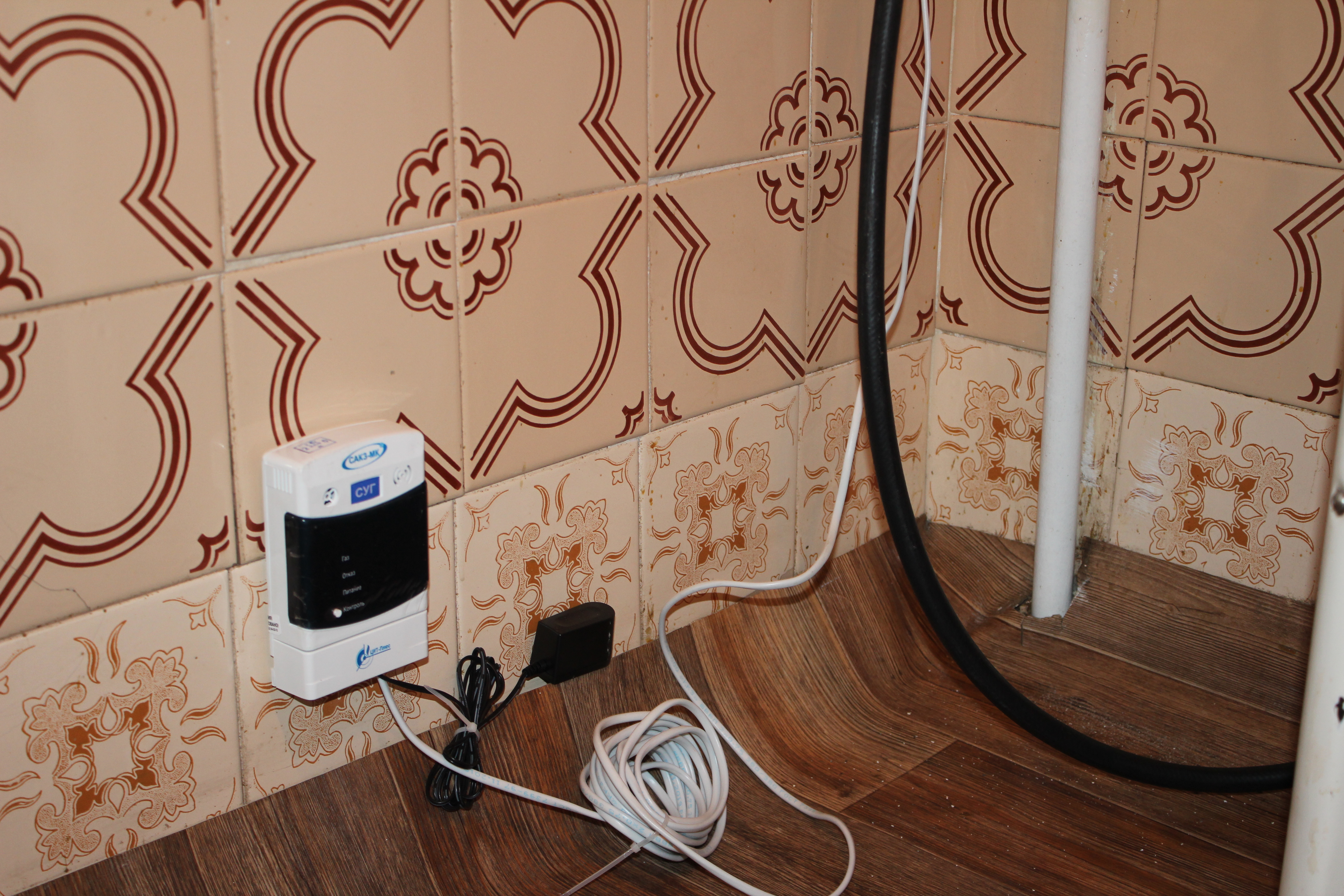 На фото внизу: смонтированный в квартире сигнализатор загазованности. Если в квартире произойдёт утечка газа, то сигнализатор сообщит жильцу об утечке газа звуковым сигналом и подаст команду о перекрытии газа на электромагнитный клапан.