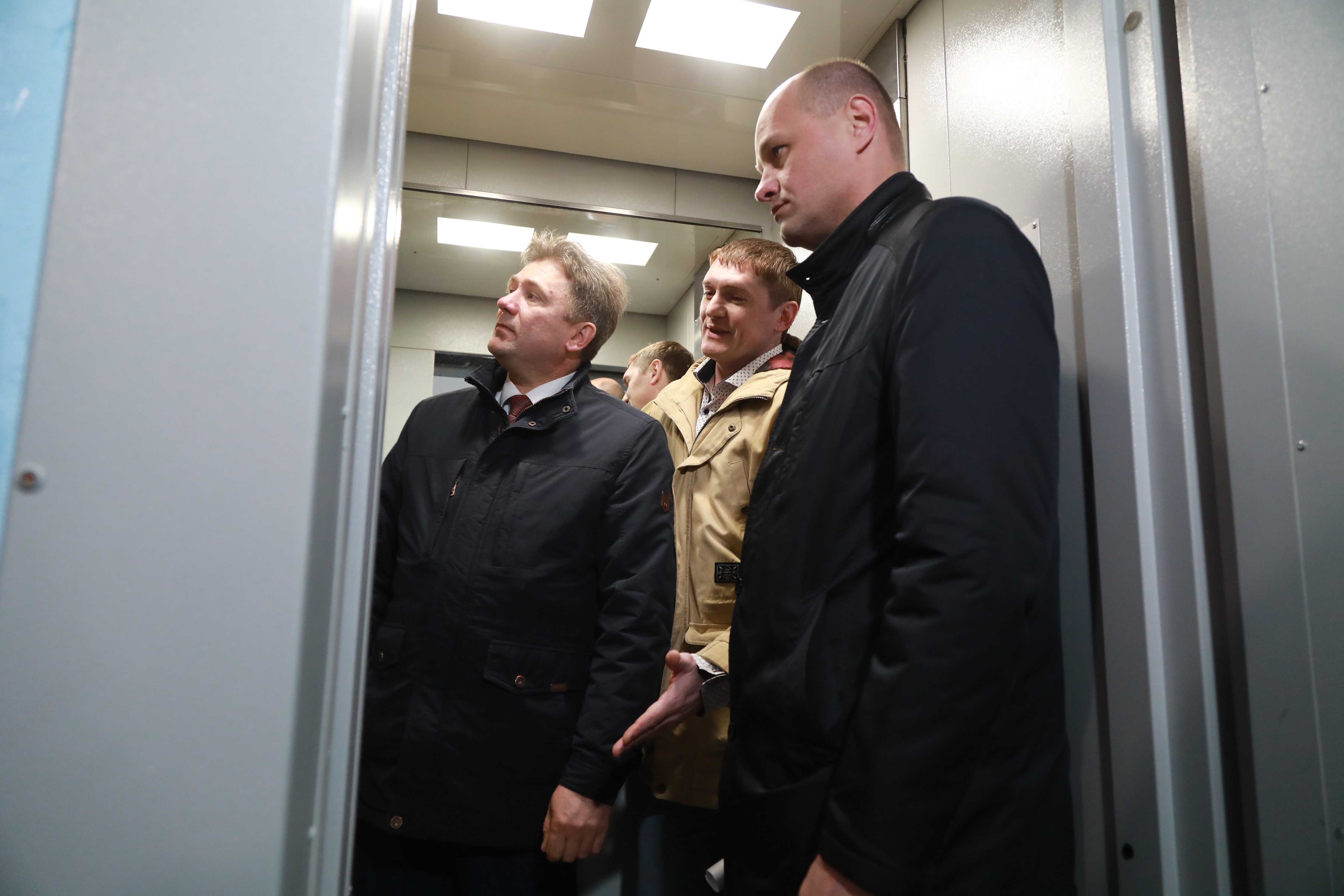 Для 9 из 11 лифтов в этом доме рабочие произвели расширение дверного проёма, чтобы подъёмником удобно было пользоваться и мамам с детскими колясками, и людям с ограниченными возможностями.
